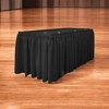 Upgrade your event décor with this Polyester Poplin Table Skirt, designed to bring a polished and professional finish to any table setup. Made from 100% colorfast polyester poplin at 7 oz. weight, this table skirt offers vibrant color, crisp drape, and long-lasting performance for weddings, banquets, trade shows, and parties. The hand-pleated design delivers a neat and tailored look, while serged edges provide a clean finish. Equipped with loop (soft side) Velcro sewn directly onto the skirt, it easily attaches to tables using the included large plastic clips for a secure and smooth fit. The fabric resists stains and wrinkles, holding up through over 75 wash cycles and handling professional cleaning detergents with ease. Available in 41 color options and 4 size choices, these table skirts are versatile enough to fit a wide range of table dimensions and layouts. Quick to set up, easy to maintain, and perfect for venues, planners, and home entertainers alike.
