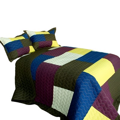 Refresh your bedroom with this Full/Queen Size Quilt Set, made from soft 100% TC fabric. The set includes one quilt and two quilted shams, each crafted with detailed hand-stitched patterns and finished with classic vermicelli quilting for added texture. The handmade character of this quilt brings warmth and style to any space, whether it's your bedroom or a guest room. This quilt set is reversible, allowing you to switch up your look with ease. Choose from 10 different horizontal stripe color options to match your personal style. The set is machine washable on a gentle cycle and can be tumble dried on low heat, making it simple to maintain. Whether as a personal upgrade or a thoughtful gift, this quilt set is designed to add comfort and charm to any home.