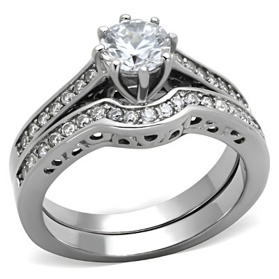 Slickblue Silver/Coffee Stainless Steel Ring Set with Clear CZ, Polished No Plating, Size 5-11 - 1 of 4