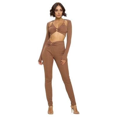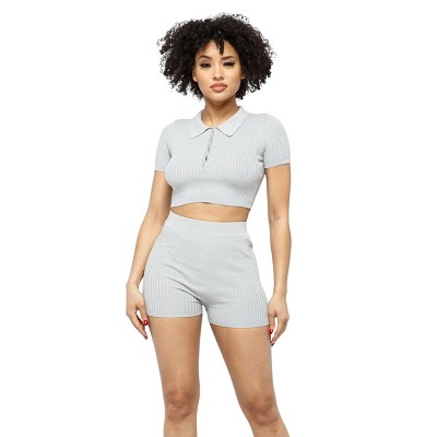 • Trendy collar crop top with matching shorts
