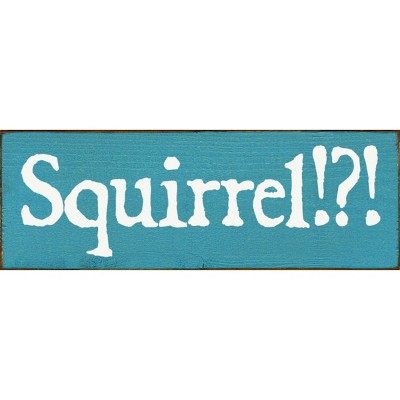 Slickblue Squirrel!? Text Sign, 3.5x10 Rustic Pine Wood Plaque, Hanging or Shelf Decor Sign, Multiple Colors