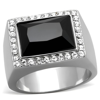 Slickblue Stainless Steel Pave Ring with 8.6mm Montana Oval Stone & Clear Accents, Polished Silver Finish, size 5