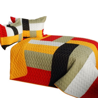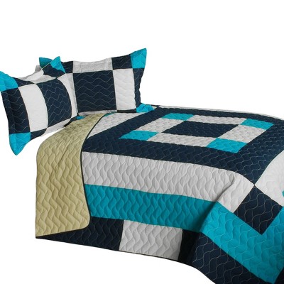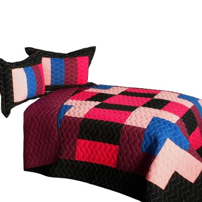 Slickblue Vermicelli-Quilted Patchwork Quilt Set, Handmade, Bedding, Geometric, 5 Designs, Full/Queen, 3PC