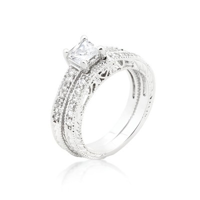 • Features an 8mm round cubic zirconia center stone