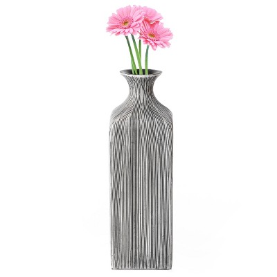 This wide flared glass vase is a handcrafted showpiece designed to enhance floral arrangements or stand out as a decorative element. Made from luminous clear glass, each vase is handblown and individually gilded with gold metal leaves, giving it a distinct finish. The curved profile and smooth flared opening provide both style and functionality-ideal for fresh flowers, pillar candles, or stand-alone display. Available in 12", 15", and 20" heights with a 6" diameter, it easily fits into a range of indoor and outdoor décor themes. Whether placed on a coffee table, mantel, or used as a centerpiece for special occasions, this vase adds eye-catching detail to any setting.