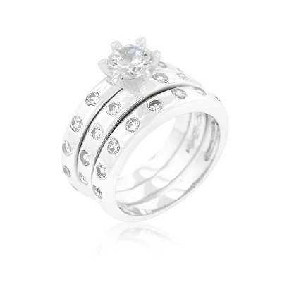 Slickblue Women’s 3.5 Ct. Round Cut Bezel Set Engagement Ring Set – Rhodium-Plated, Sizes 5-10