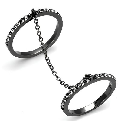 This Light Black IP Gun Stainless Steel Women Ring features a pear shape that combines rich tones and eye-catching sparkle. At the center is a cluster of small blue synthetic crystals, surrounded by a border of clear stones that enhance the ring’s shimmer and dimension. The dark IP finish adds contrast, giving the multi-color stones a vivid pop. With a smooth band crafted from stainless steel, this lightweight ring offers a comfortable fit and is available in sizes 5 to 10. Whether you're marking a moment or just adding something bold to your collection, this pear shape ring is a standout piece for day or evening wear.