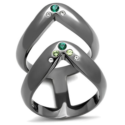 Show off a modern and versatile style with this Light Black stainless steel ring featuring a striking 18 mm Capri blue synthetic crystal. Choose from three unique top designs—square, octagon, or triangle—each accented with clear synthetic crystals for added sparkle. The single-tone IP gun finish enhances the contemporary look, making it a bold accessory for women who love distinctive jewelry. Crafted in stainless steel with ion plating, this polished ring combines standout design with everyday wearability. Perfect for gifting or as a statement piece, the combination of Capri blue and clear crystals offers a vibrant, eye-catching appeal. Available in women’s sizes 5 through 10, it’s ideal for mixing, matching, or wearing solo for maximum impact.