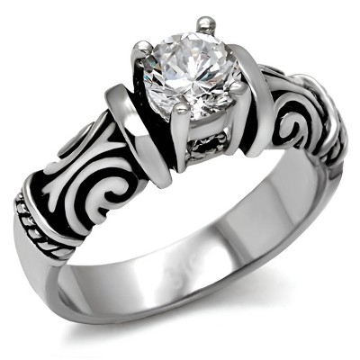 Slickblue Women's Celtic Engagement Ring - 6mm Clear CZ Round, Polished Stainless Steel, Solitaire, Size 9