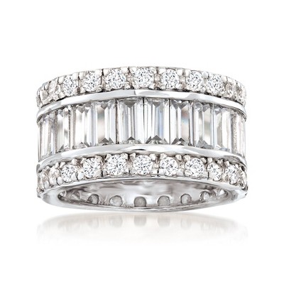 Slickblue Women’s CZ Ring Set, Silver, 7mm Round Center, Baguette Side Stones, Polished Stainless Steel, Sizes 5-10 - 1 of 4