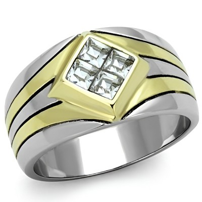 Slickblue Women's Dolphin Stainless Steel Ring with Synthetic Clear Crystals, Two-Tone IP Gold Finish, size 8