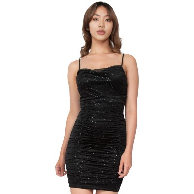 Slickblue Women's Glitter Mesh Ribbed Cami Mini Dress, Stretch Fit, Party Style, Black, Size S