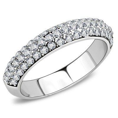 Upgrade your accessories with this IP black stainless steel band ring featuring a modern pave setting. Designed with multiple round-cut cubic zirconia stones clustered across the top half, this ring delivers shimmer and structure with every angle. The polished IP black finish enhances its sleek silhouette, offering bold contrast against the clear stones. Whether worn as a solo piece or stacked with other rings, it’s a versatile choice for women who want a contemporary look with a touch of shine. Available in sizes 5 to 10, it’s ideal for casual wear, going out, or adding texture to your jewelry stack.