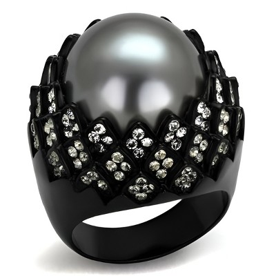 Slickblue Women's IP Black Stainless Steel Ring with Gray Synthetic Pearl, Size 5-10 - 1 of 4