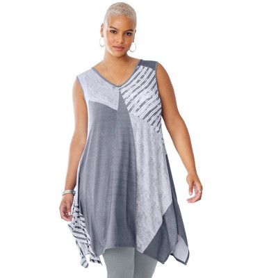 Slickblue Women's Knit Tunic Top, Star Texture with Shark Bite Hem, Relaxed Fit, Golden Sand, S - 1 of 4