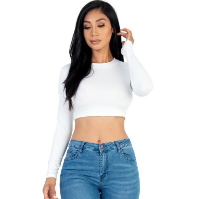Update your wardrobe with this Women's Crew Neck Long Sleeve Cropped Top-a versatile piece designed for comfort and everyday style. Made from a soft, stretchy jersey fabric, this long sleeve top offers a figure-flattering fit with a classic crew neckline and cropped length. Lightweight and flexible, it's ideal for layering under jackets, cardigans, or wearing on its own with high-waisted jeans, skirts, or leggings. Available in a wide range of colors, this top easily adapts to any season and outfit. Perfect for casual outings, weekend plans, or easy layering, it's a go-to essential for shoppers seeking a stylish, comfortable crop top with long sleeves.