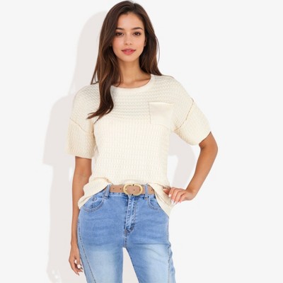 Add a modern layer to your wardrobe with this women’s long sleeve mesh panel sweater top—where comfort meets standout style. Crafted from a soft rayon-blend knit, this sweater features mesh paneling along the arms and sides for an updated take on the everyday pullover. The relaxed fit and crew neckline offer easy wearability, while the textured contrast brings dimension to your look. Available in Burgundy, Khaki, and Off White, this top works well for casual layering or styled with trousers for an elevated outfit. Lightweight yet cozy, it’s a go-to choice for transitional weather and beyond.