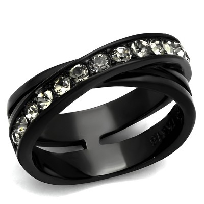 Slickblue Women’s Ornate Pave Ring, Black Stainless Steel with Clear Synthetic Crystals, Modern Style, Size 5–10 - 1 of 4