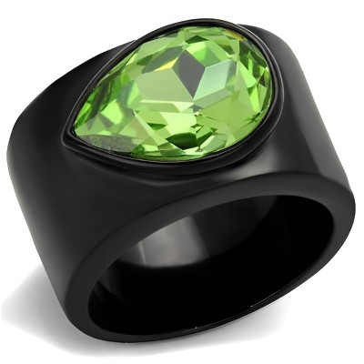 Slickblue Women’s Polished Stainless Steel Ring, Crystal Rhinestone Pave Design, Peridot, 7
