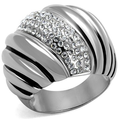 Slickblue Women’s Polished Stainless Steel Ring with Heart-Shaped Clear Crystal, Pave Design, Size 5-10 - 1 of 4