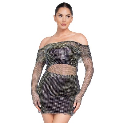Turn heads with this Women's Rhinestone Bustier Crop Top, designed to blend standout sparkle with sleek comfort. Made from a stretch blend of 95% polyester and 5% spandex, this top offers a flexible fit and smooth feel against the skin. The sweetheart neckline and padded bust provide flattering support, while adjustable cami straps ensure a secure, customizable fit. Covered in rhinestone accents, this crop top adds shine and texture, making it perfect for evening looks or night-out styling. Available in Black, Champagne, White, and Ruby, this top pairs easily with high-waisted pants, skirts, or trousers for a bold, modern look. Offered in sizes S, M, and L.