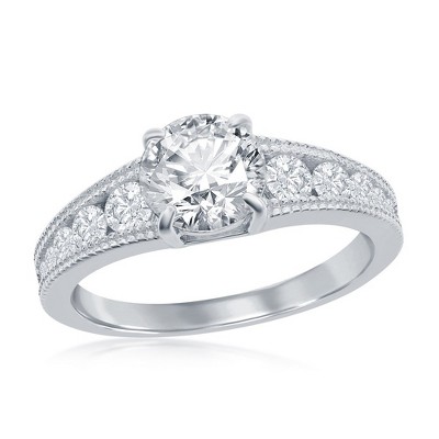Slickblue Women’s Round CZ Ring Set, Prong Setting with Multi-Band Design, Channel CZ Accents, Silver Steel, Size 5–10 - 1 of 4