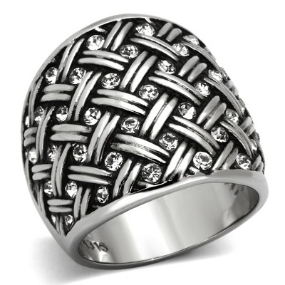 Slickblue Women's Round London Blue CZ Ring, Stainless Steel, Polished No Plating, Pave Style Jewelry, Size 5-10 - 1 of 4