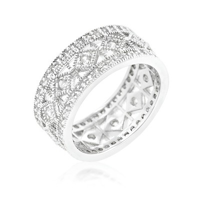 Slickblue Women’s Simple Classic Cubic Zirconia Band – Contemporary Rhodium-Plated Design, Size 5-10 - 1 of 4