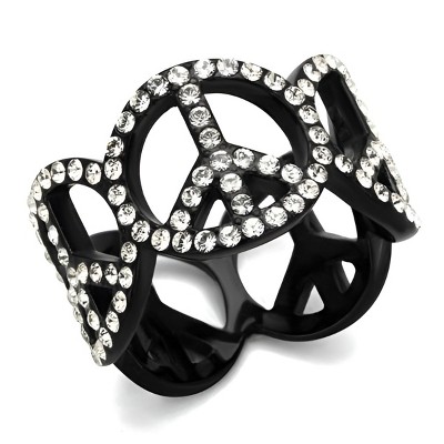 Add a touch of modern style to your jewelry collection with this IP light black stainless steel ring. Designed with a sleek single-tone finish, it showcases a black diamond–colored synthetic crystal at the center with pave rhinestone accents for added shine. The smooth band and polished look make it a versatile piece to wear for casual outings or special occasions. Available in sizes 5 through 10, this lightweight ring is an easy way to update your accessory lineup.
