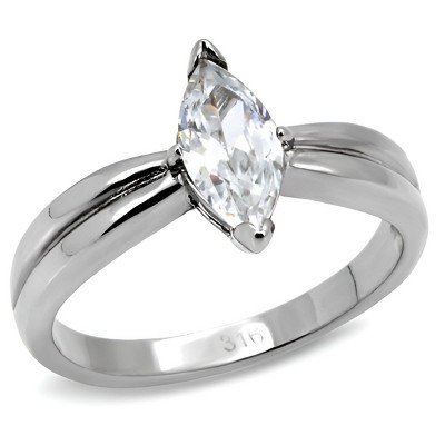 This polished stainless steel ring features a stunning clear CZ stone set in a classic three-stone design. Crafted from TK316 stainless steel with no plating, the ring maintains a sleek finish. The 10mm pear-shaped center stone is complemented by two smaller stones, creating a balanced and elegant look. Weighing approximately 3.10g and available in size 5-10, this ring is perfect for engagements, anniversaries, or any special occasion. Its timeless design adds sophistication to both casual and formal styles.