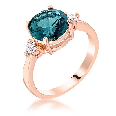 Slickblue Women's Three-Stone Rose Gold Stainless Steel Ring with Round Clear CZ, 8mm Center, size 9