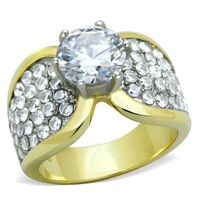 Slickblue Women's Two-Tone Stainless Steel Ring with Topaz & Clear CZs, Engagement, Round, Sizes 5-10 - 1 of 4