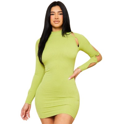Slickblue Womens Mesh Corset Mini Dress, Square Neck Sheer Bodycon Style, Stretch Jersey, Olive Branch, Size S-L - 1 of 4