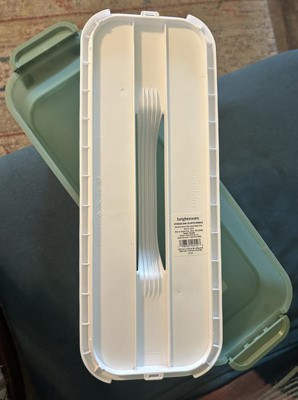 This Slim Lid with Handle from Brightroom™ is the ultimate companion for your storage bins. Made of polypropylene, this slim lid features a top handle for easy transportation and boasts a latch closure for secure storage. Plus, it's designed in a white hue to match existing decor themes and pairs well with various bins.