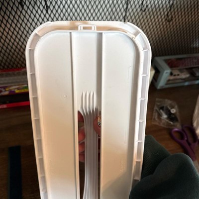 Not sure how I am supposed to review this when Target literally sent me just a lid. Um, it is a lid with a handle, that probably fits the container it goes with. It is made of plastic and is white. Don't leave it on your car dash on a hot day. :)