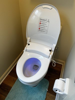 I bought this a few weeks ago and have never used a bidet before and after some careful consideration, we decided for the Slim 3. With its heated water, heated seat, and frontal feminine area wash, it was really all we could ask for. It emits a soft blue glow which may be for UV sterilization but really its just helpful as a nightlight. I would recommend this bidet to others.