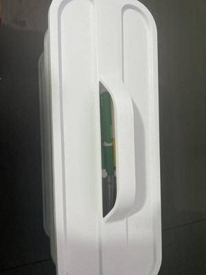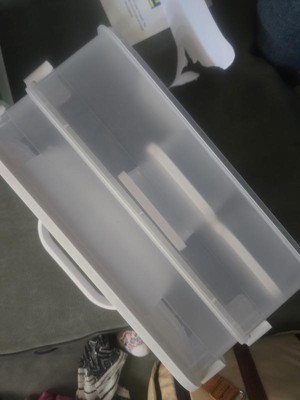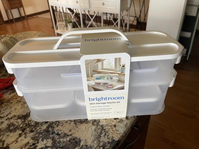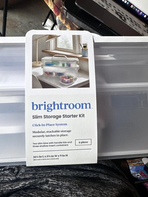 Declutter your home and maximize storage space with this Slim Toolbox with Container Set and Handle Lid from Brightroom™. This set includes a large toolbox with one rectangular container and three square containers. You can easily fit small containers in the toolbox and pack the contents with the lid. Plus, the top handle offers convenient carrying options.