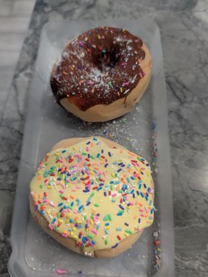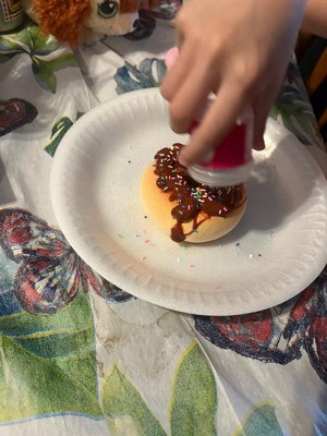 [This review was collected as part of a promotion.] My niece was excited to play with this. Smelled kinda like donuts but not really? Lol. The slime(frosting) was hard to get out of the bags. But after that decorating the donuts was fun. She enjoyed squishing it up. She said it was super cool.