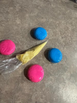 [This review was collected as part of a promotion.] This slime is so much fun. We washed our hand before starting. Then she used the scissors to cut a small hole in the piping bag. Then we squeezed the cream on to the macaron. We stretched it and smashed it. So much fun. Great textures. Two blue two pink and one yellow. Light scent and beautiful packaging. Cleanup was easy.