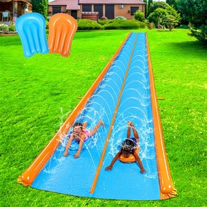 Joyfy 25ft Double Lane Water Slides with Bodyboards and Sprinkler, Summer Yard Outdoor Water Slip for Kids Adults