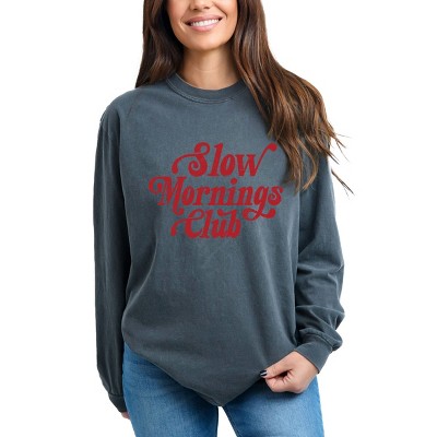 Slow Mornings Club Distressed - Women's Garment Dyed Graphic T-Shirt
