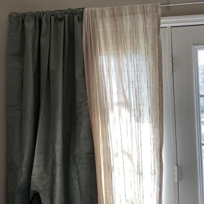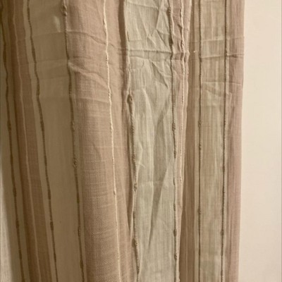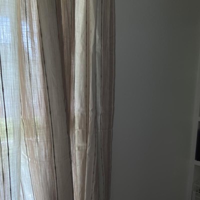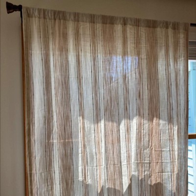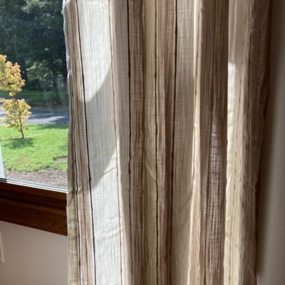 Infuse southwestern chic into any room of your home with the Slub Texture Stripe Cotton Curtain from Archaeo. Featuring yarn-dyed vertical stripes, this slub textured semi-sheer cotton fabric gently filters light while enhancing privacy. Pole top rod pocket design allows for simple slide-through installation on curtain rods up to 1 ½" in diameter. Sold as individual panels. Measure carefully before selecting your desired size and quantity. Rod not included. Hand wash using cold water. Use non-chlorine bleach when needed. Line dry using a cool iron as needed.