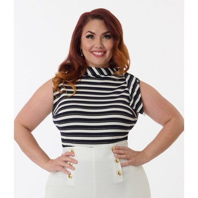 This sweet blouse from Smak Parlour is crafted in a blue and white striped semi-sheer crepe fabric and boasts a button front accented with darling pearl buttons. The classic ruffled collar is framed by the short puff sleeve silhouette, while the rounded hemline is perfect for tucking into your favorite pair of high waisted pants!