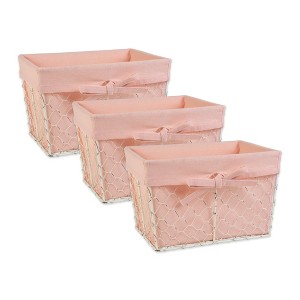 - 3 PIECE SET: Set includes 3 distressed white wire baskets with removable blush fabric liners: Small (9" Length x 7" Width x 6" heigth)
