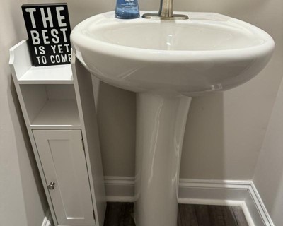 Small Storage Corner Floor Cabinet with Door and Shelves, Storage Organizer, Narrow Toilet Paper Storage Cabinet, White