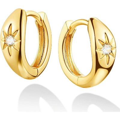 ●Earrings Size: These 14k gold plated oval hoop earrings are 16mm(0.63in)*13mm(0.51in)*0.75(0.29in) ,.0.29oz.This small thick huggie hoops earring with sturdy secure clasp is light and easy to wear