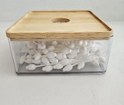 Small Clear Canister with Bamboo Lid - Brightroom™: Bathroom Container, Qtip Holder, Spot Clean, 3" Height