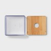 Designed in a rectangle shape, this small canister closes with a bamboo lid to help keep the contents nicely contained and secure.