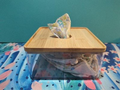 This is probably pretty niche, but I've been looking for a dispenser for my hankies. I have several reusable boxes from LastObject but you can't buy just their container without the hankies and I already have plenty of those. The hole in the lid of this container is perfect to use to dispense the hankies!