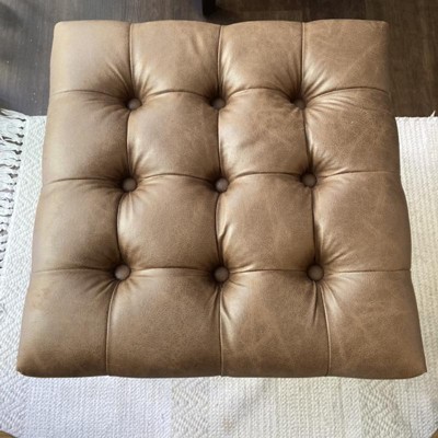 Small Decorative Ottoman Faux Leather Brown - HomePop: Metal Frame, Tufted, 250lb Capacity